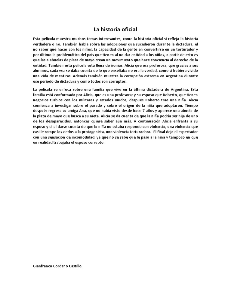 La Historia Oficial Resumen / Https Dialnet Unirioja Es Descarga Articulo 3797189 Pdf : Tienen una casa bien edificado, la madre es un profesor de la universidad y enseña la historia argentina, y la padre trabaja por un trabajo en la ciudad.